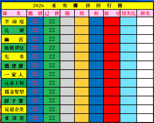東甯盃第一季聯賽成績