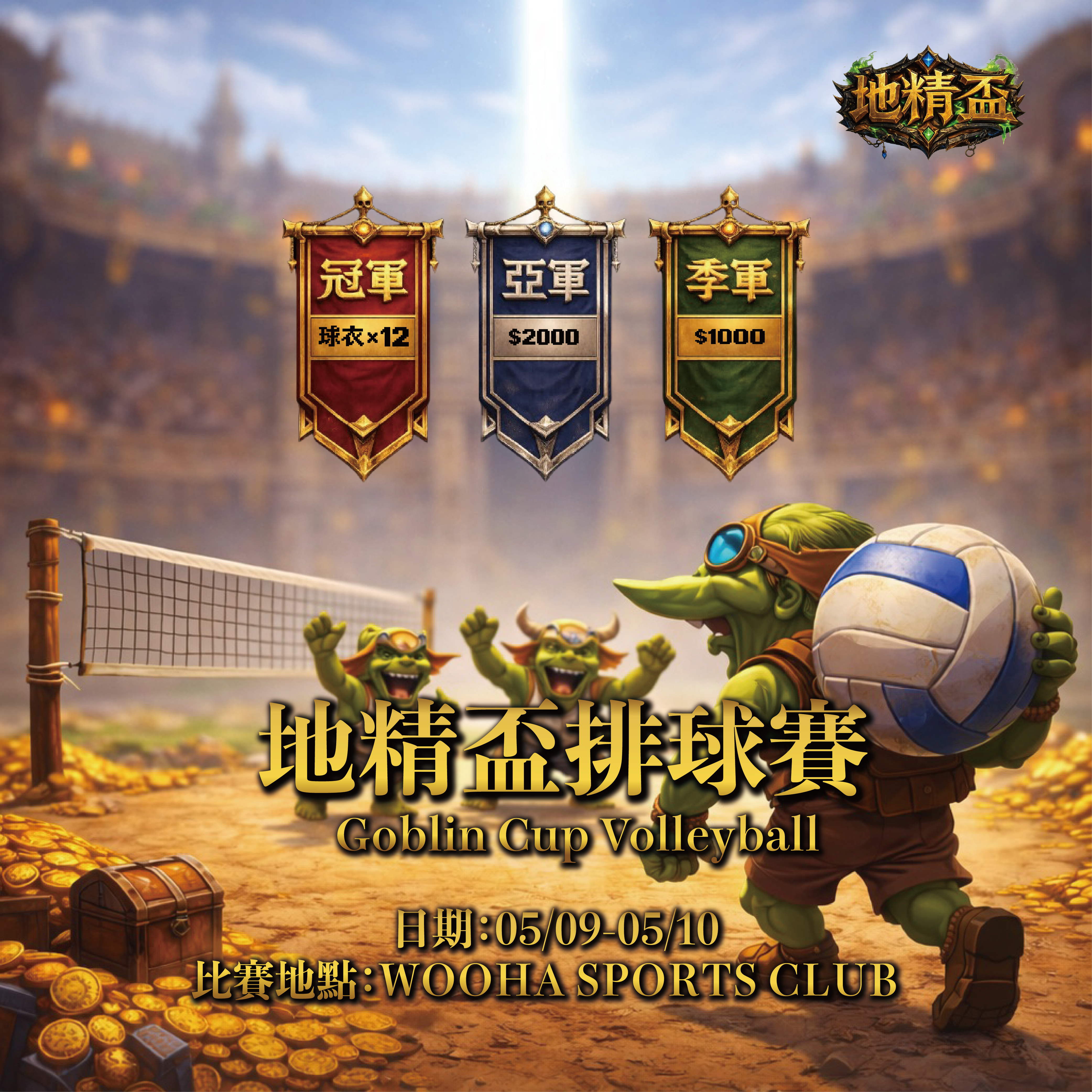 - 冠軍:地精盃專屬隊衣(依報名隊員人數訂製,上限12件)。