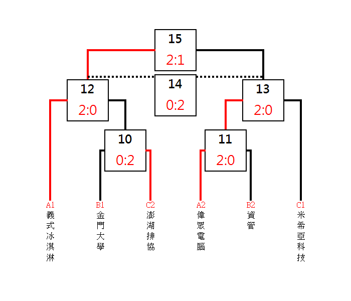 1.初賽(預賽)各分組取前2名晉級複賽(決賽)。