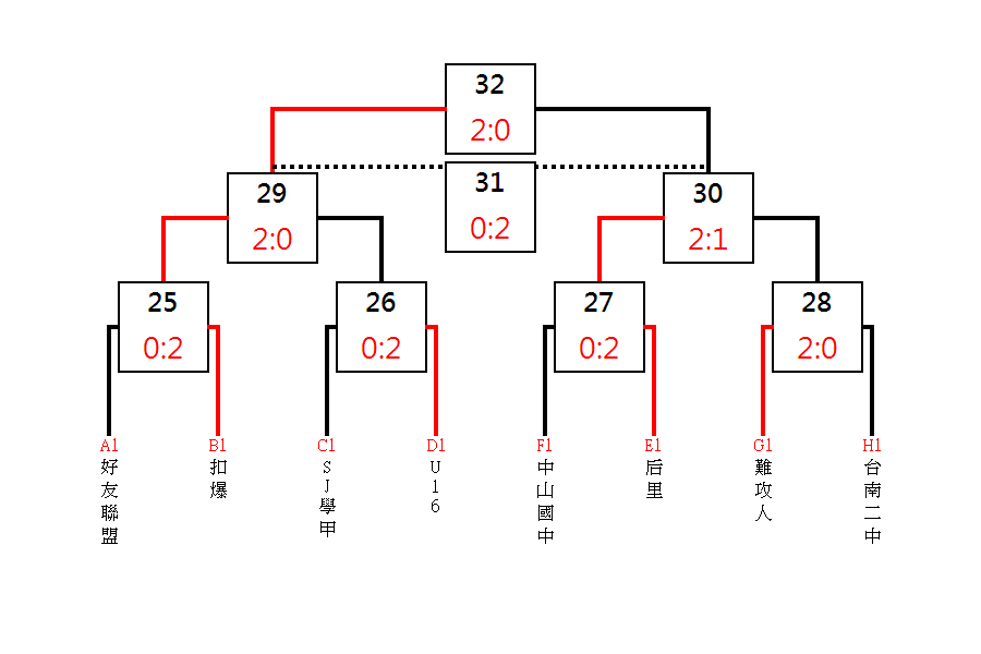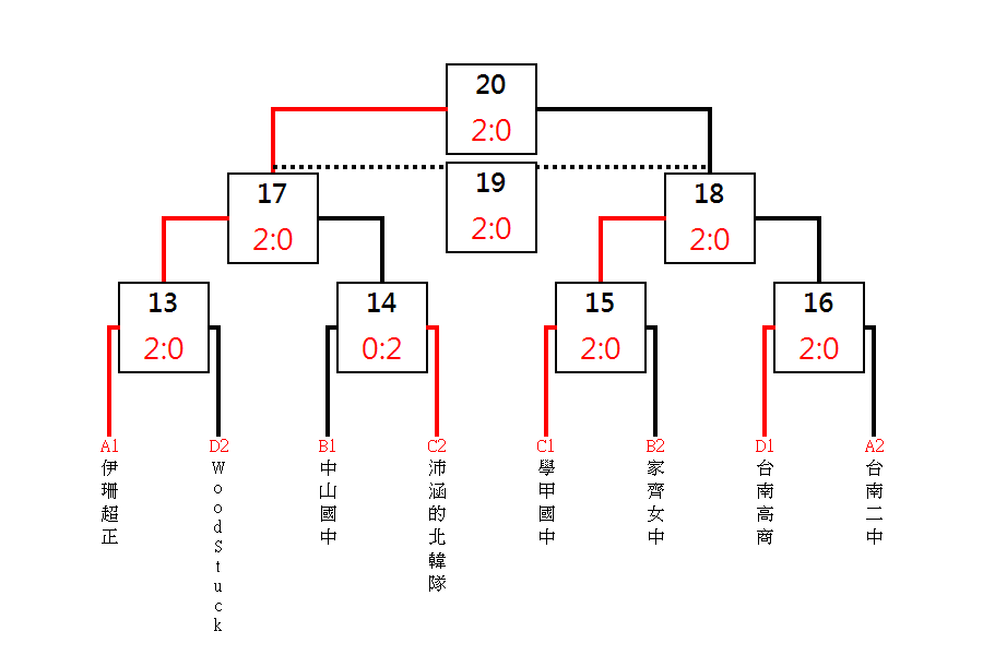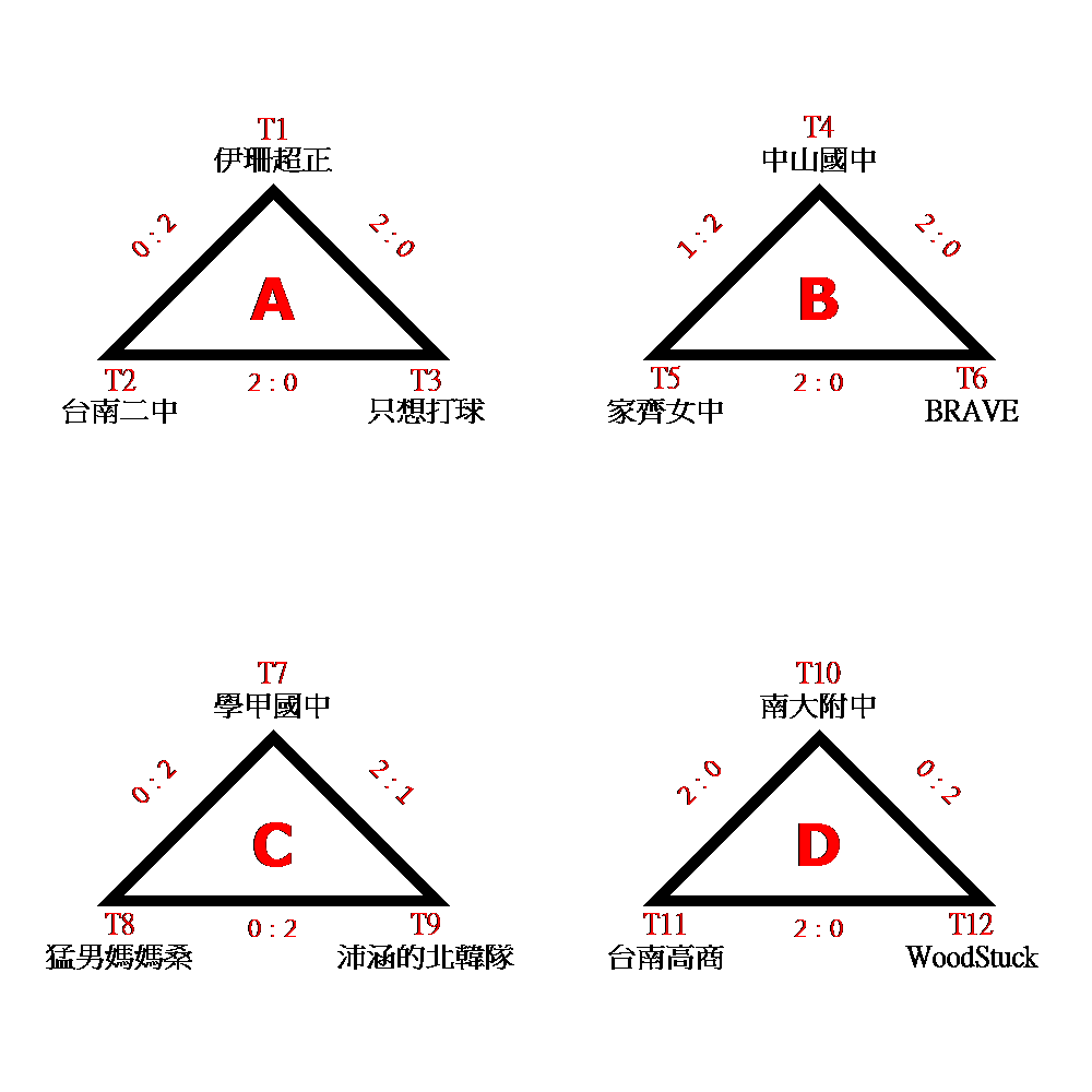 1、預賽分組前兩名進入決賽。 2、預賽如兩隊戰績相同,以該組總得分除以總失分,商數高者獲勝。如商數相同者,由大會抽籤決定。