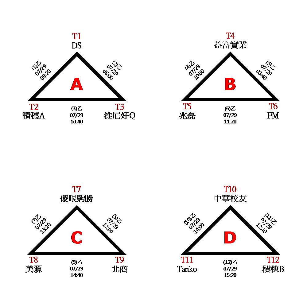 12隊,四組循環,各取一,晉級決賽 決賽為單淘汰制,需抽籤