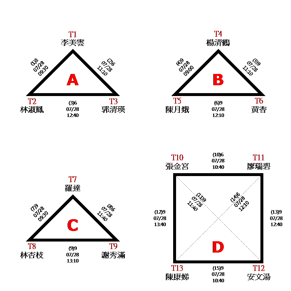 賽程時間以現場公告為準,一場接一場,中間不休息。複賽排位於現場抽籤決定。