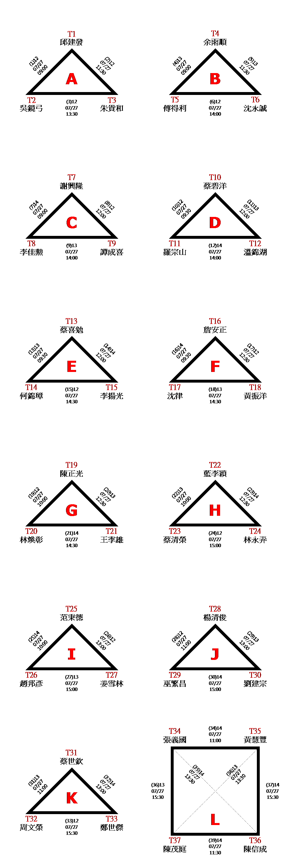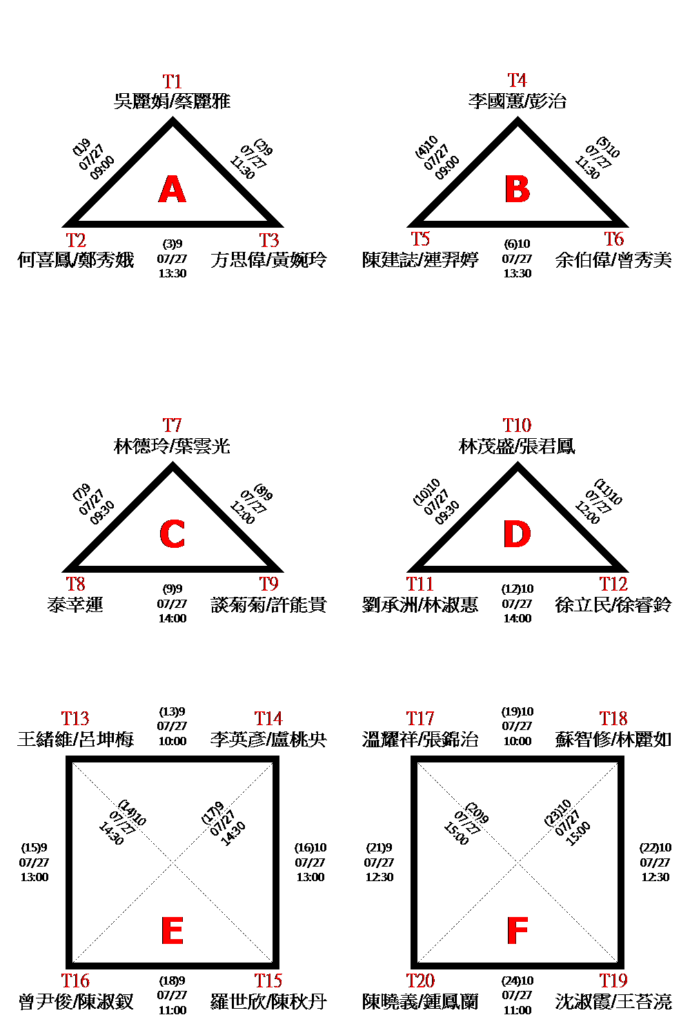 賽程時間以現場公告為準,一場接一場,中間不休息。複賽排位於現場抽籤決定。