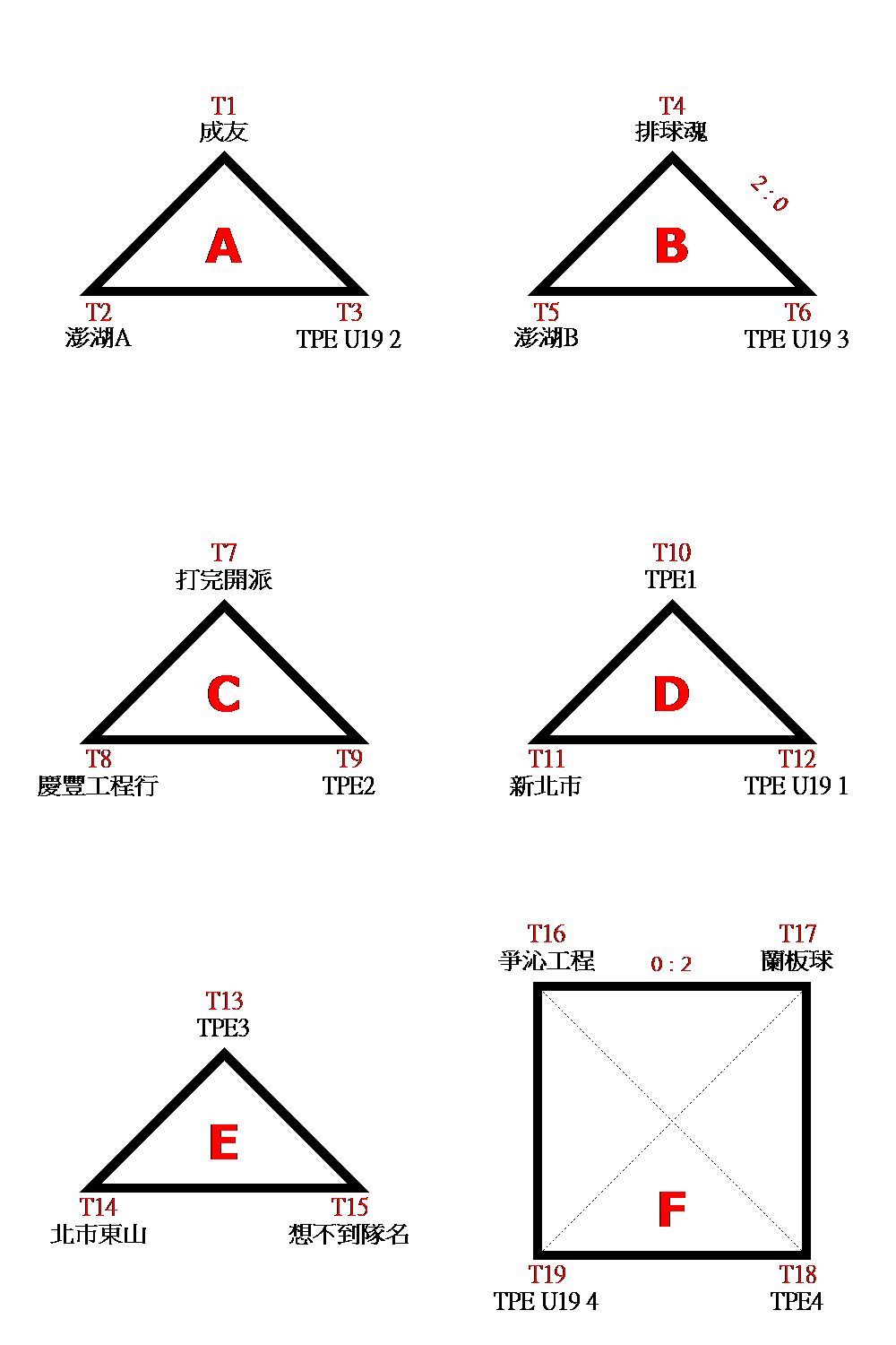 1.初賽(預賽)分組ABCDEF取二名,晉級決賽。