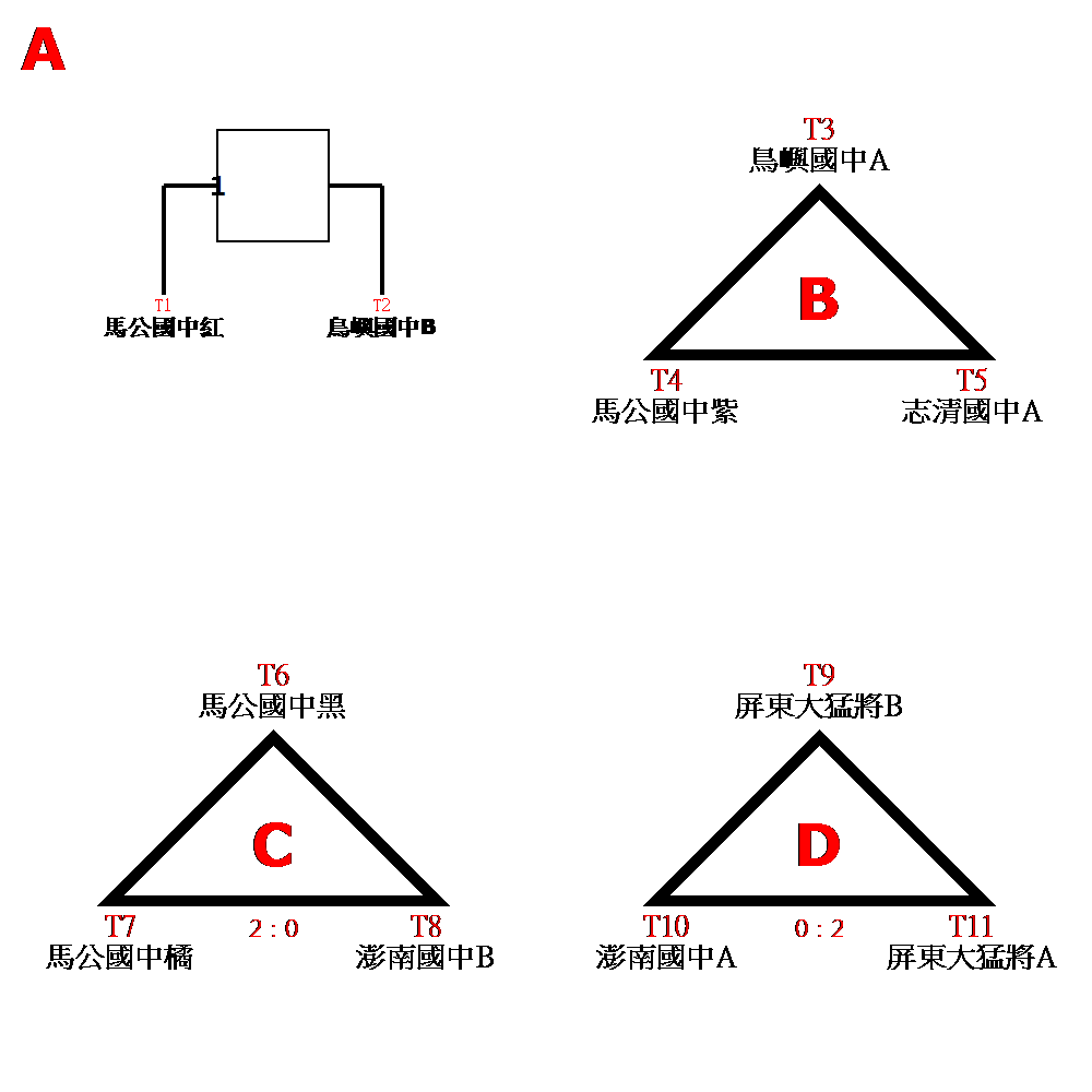 1.初賽(預賽)分組ABCD取二名,晉級決賽。