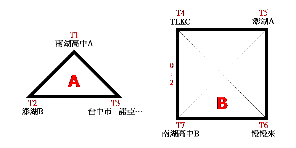 1.初賽(預賽)分組A取一名、分組B取二名,晉級決賽。