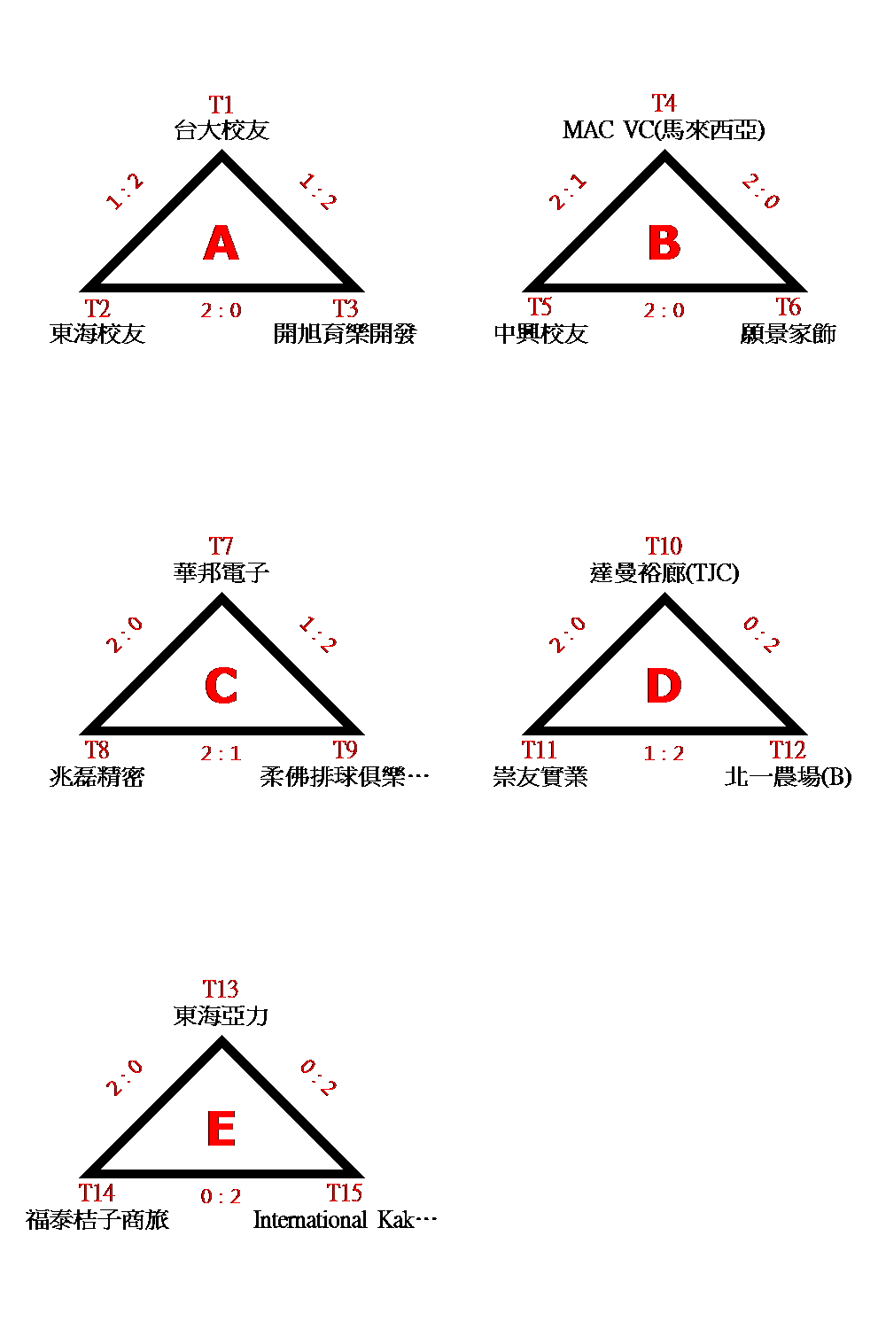 預賽各組三取二或四取三,共取七隊進入複賽!