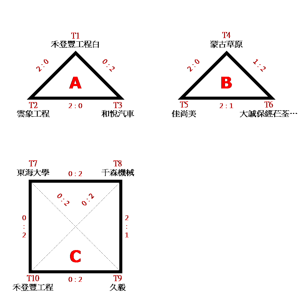 預賽各組三取二,共取四隊進入複賽!