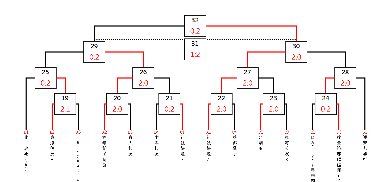 預賽打完(17:30)請至風雨球場乙場地處抽複賽籤! 分組冠軍抽1、7、8、14號籤!(先猜拳決定抽籤順序)、分組亞軍抽2、4、10、12號籤!(前二輪避開和預賽同組的冠軍)、分組季軍抽3、5、11、13號籤!(第一輪避開和預賽同組的亞軍) 、分組殿軍抽6、9號籤!(第一輪避開和預賽同組的冠軍)