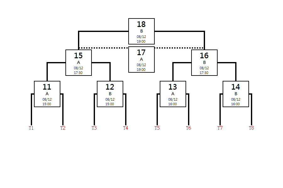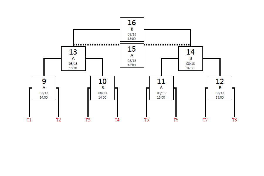初賽採分組循環制,複賽採單敗淘汰制。 請各隊初賽循環完賽後立即派員於報到處進行複賽抽籤,若未派員將由賽會負責人代為抽籤,不得有異議。 分組第一將排在複賽1、3、5、7號籤,分組第二將排在2、4、6、8號籤。 複賽第一輪以初賽同循環隊伍不相遇為原則。