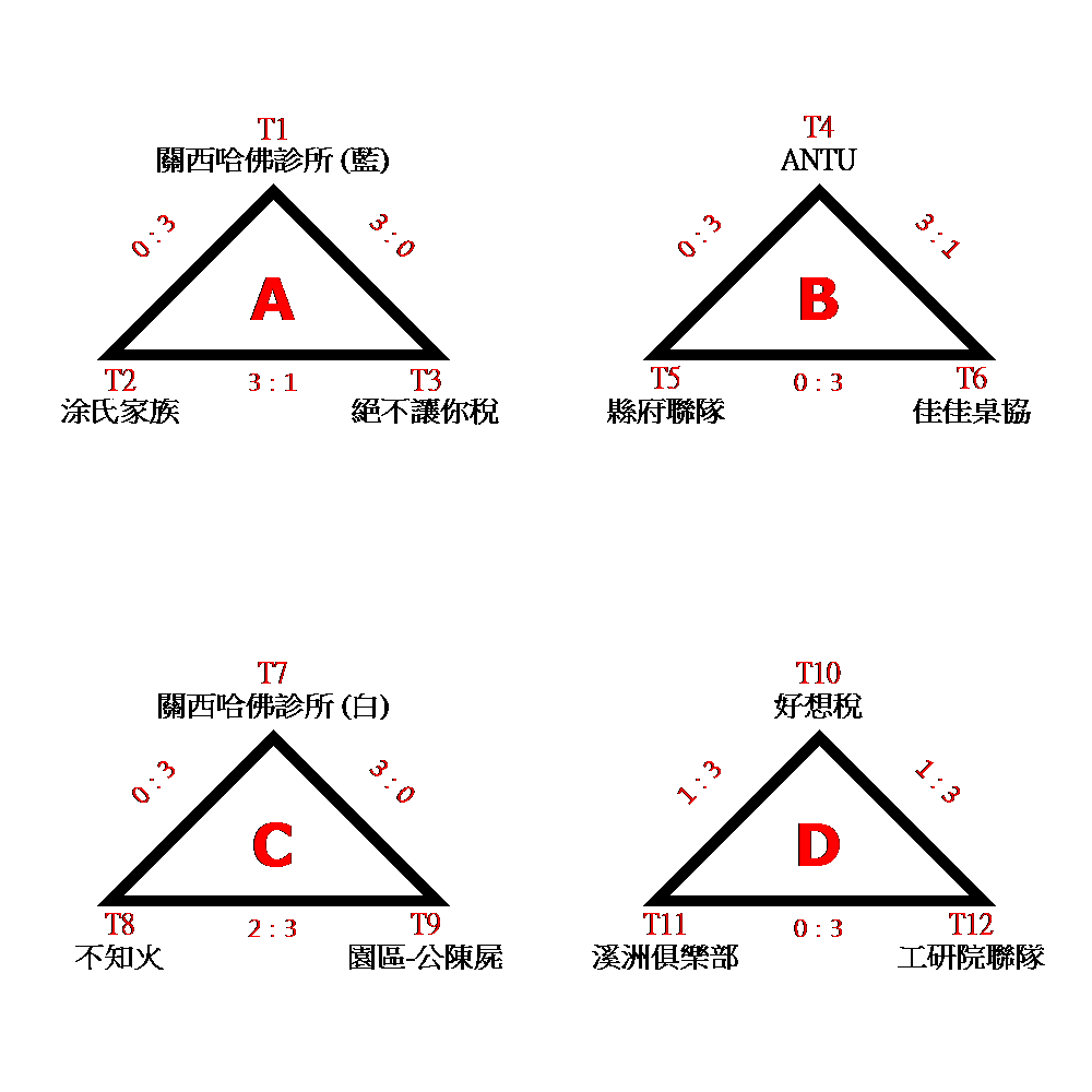 編號順序(1)(2)(3)(4)與實際出賽場次無關,桌次依照現場廣播為主
