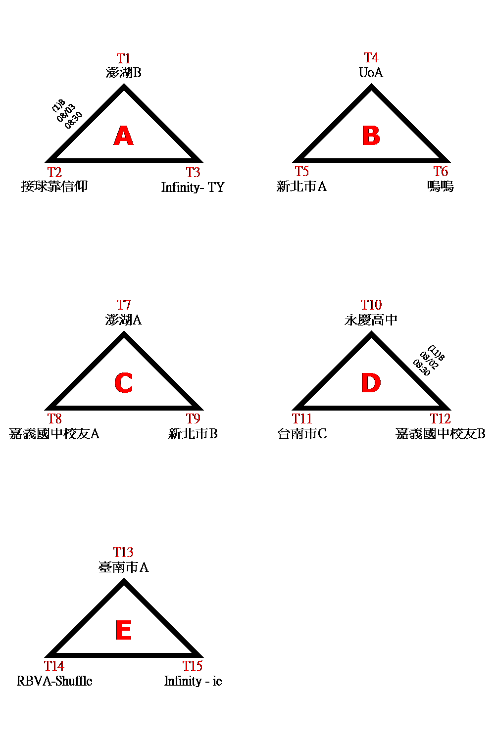 1.初賽(預賽)分組ABCDE取二名,晉級決賽。