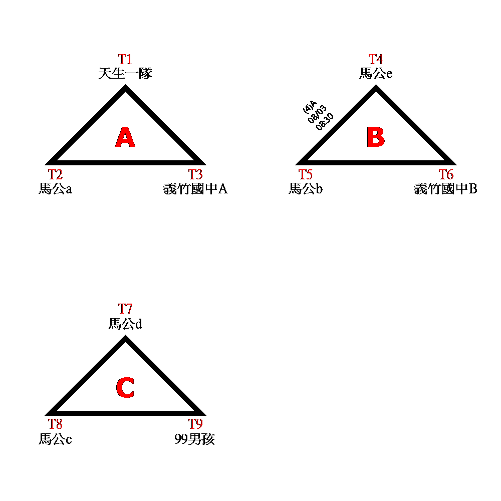 1.初賽(預賽)分組ABC取一名,晉級決賽。