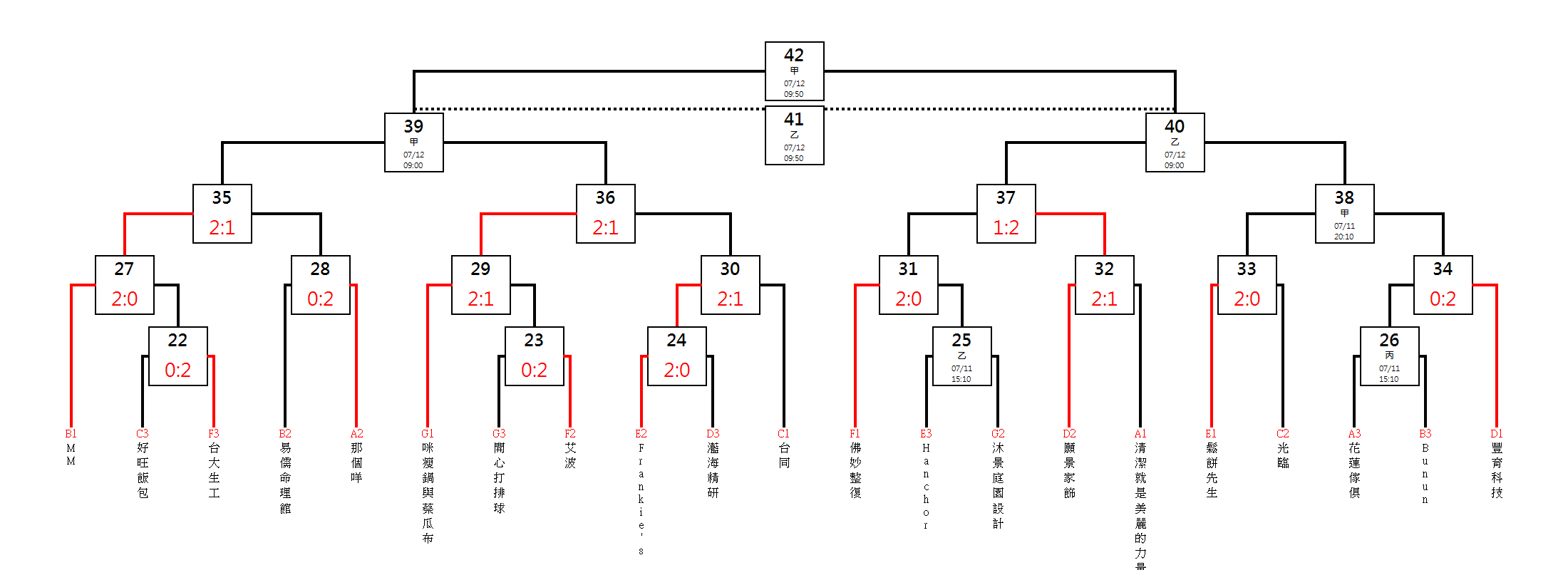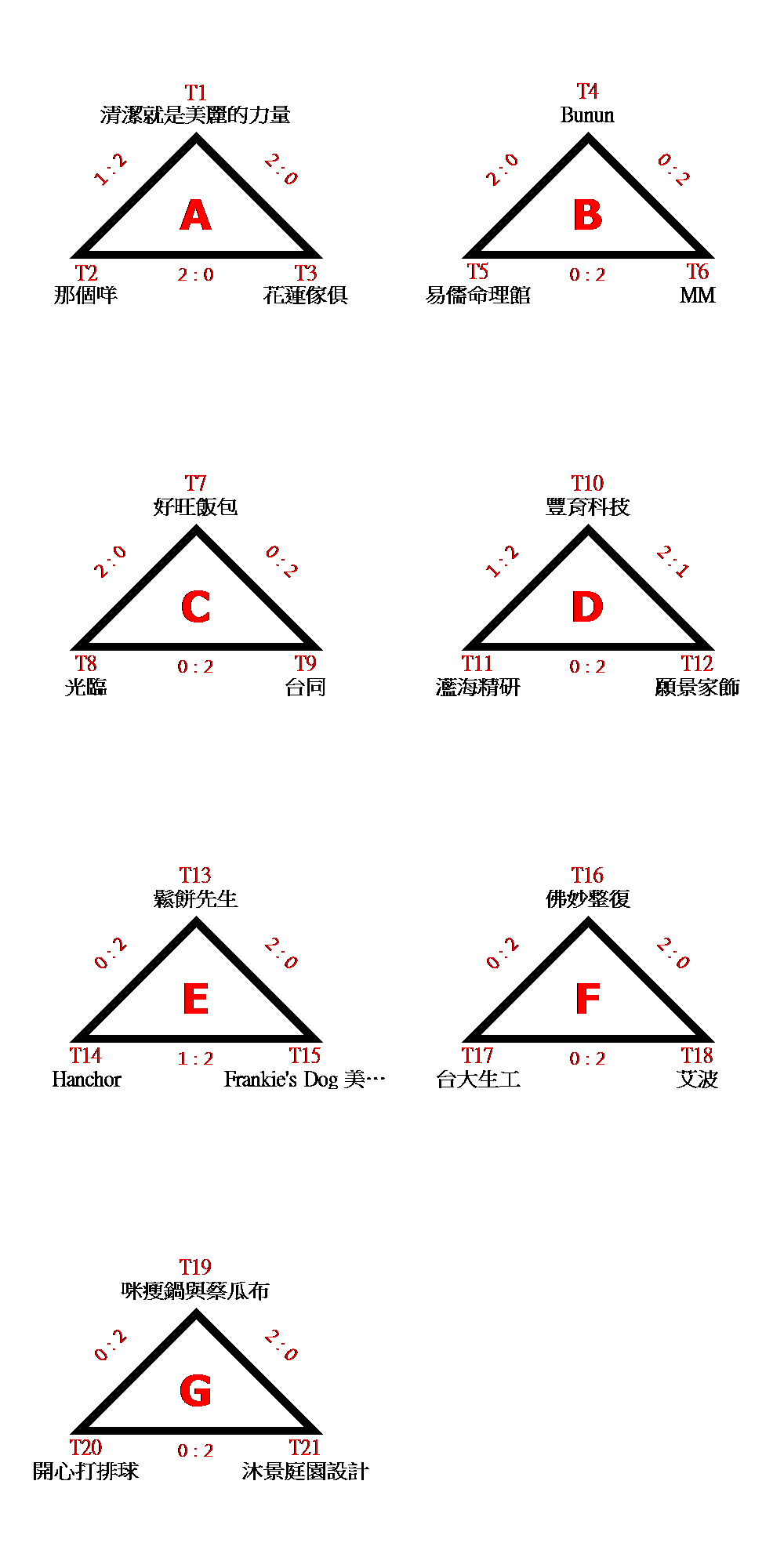 混合組預賽賽程全部結束後,預賽各分組第一抽複賽的 T1、T6、T11、T12、T16、T17、T21 種子籤。