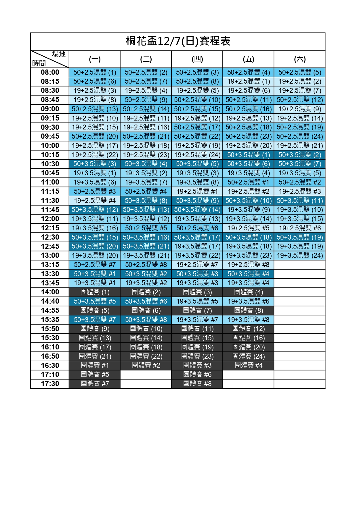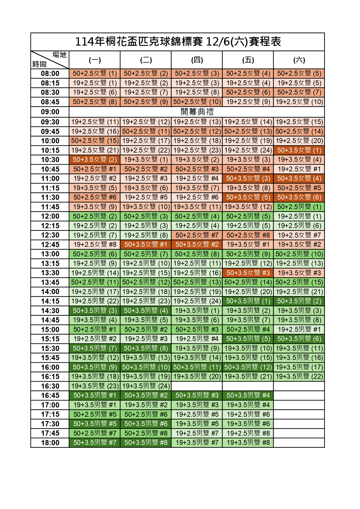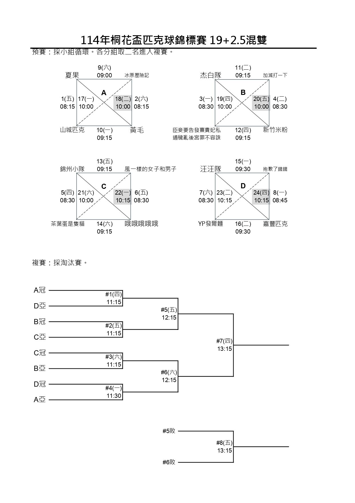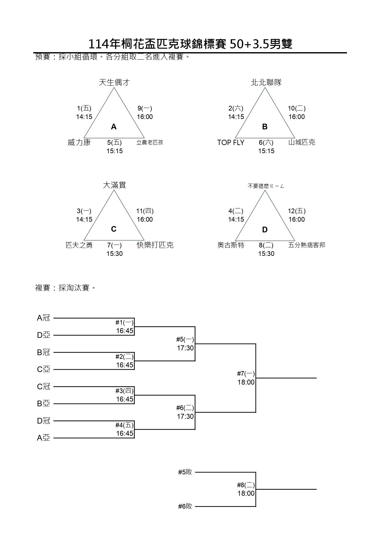 114新北市桐花盃第一屆匹克球錦標賽-賽程時間圖