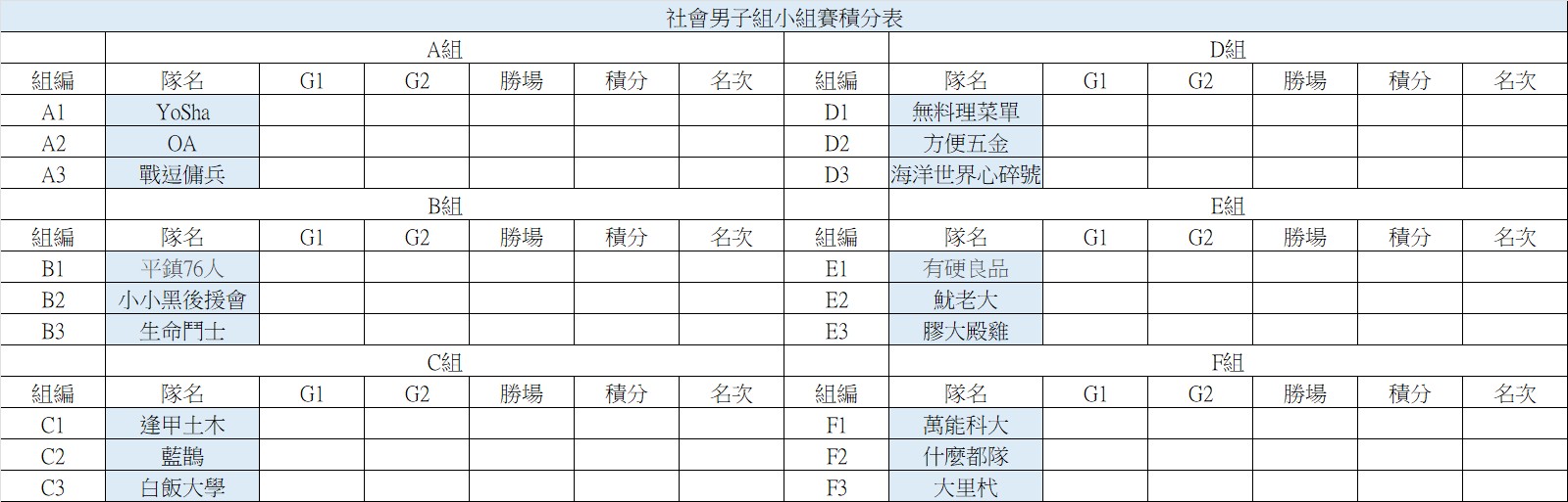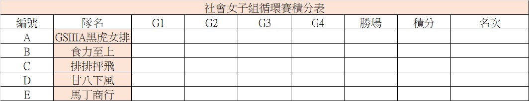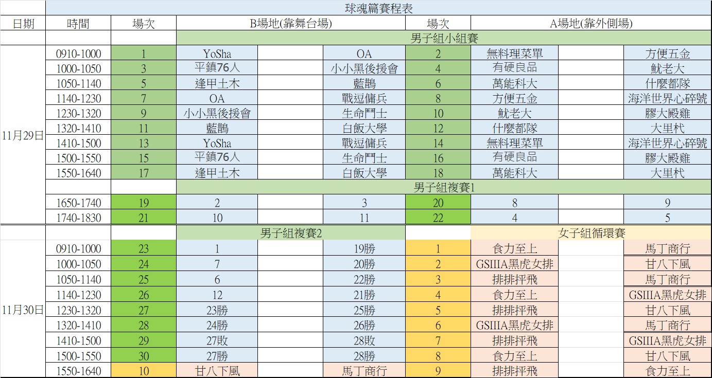賽程表因女子組改為周日進行賽程重新調整,現全新公告: