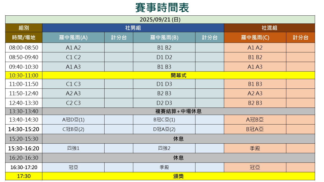 【公告】賽程時間表