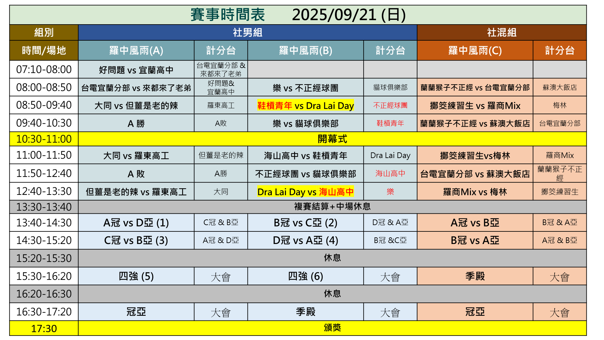 部分賽程時間經雙方隊長協調稍作調整,計分台部分大會依賽程作調整。