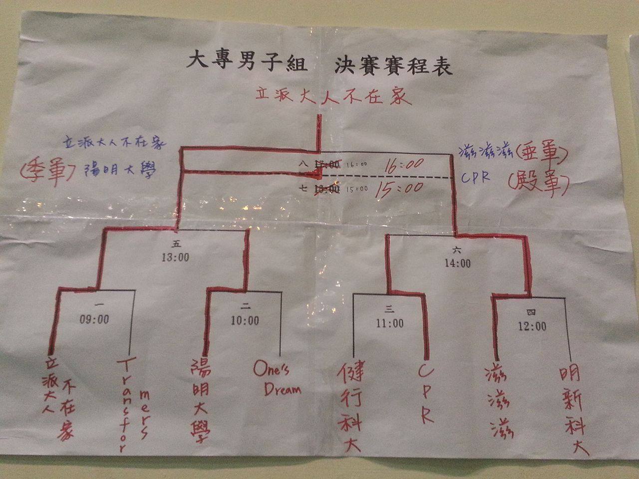 決賽為預賽晉級隊伍抽籤,確定晉級隊伍即可先抽籤,依據競賽規章第十一項抽籤後對戰組合若和預賽相同則全部重抽!