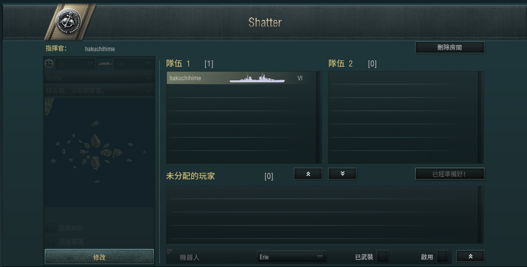 地圖抽選已於昨日抽選完畢了 ======================================= 場次12 Shatter (制海權) 隊伍1 琳式 隊伍2 乂兄貴♂哲學♂煞氣♂扶他♂NGG乂 ============================================ 場次13 Ocean (制海權) 隊伍1 EZ GAME 隊伍2 Combined Noobs Fleet LOP ======================================= 場次14 Ocean (制海權) 隊伍1 東方縱谷巨獸 隊伍2 Chilli Chicken ======================================= 場次15 Neighbors (制海權) 隊伍1 在下海猴,有何貴幹 隊伍2 鱼塘储备队 ======================================= 場次16 Shatter (制海權) 隊伍1 P.公海Banzai.Y 隊伍2 萌新技研團 ======================================= 場次17 Ocean (制海權) 隊伍1 I'm NPC7 MD 隊伍2 新日暮里哲学组 ======================================= 場次18 Shatter (制海權) 隊伍1 亚洲第一菜逼 隊伍2 We are the monkey. ======================================= 場次19 Ocean (制海權) 隊伍1 夕張我老婆! 隊伍2 P.Y.T