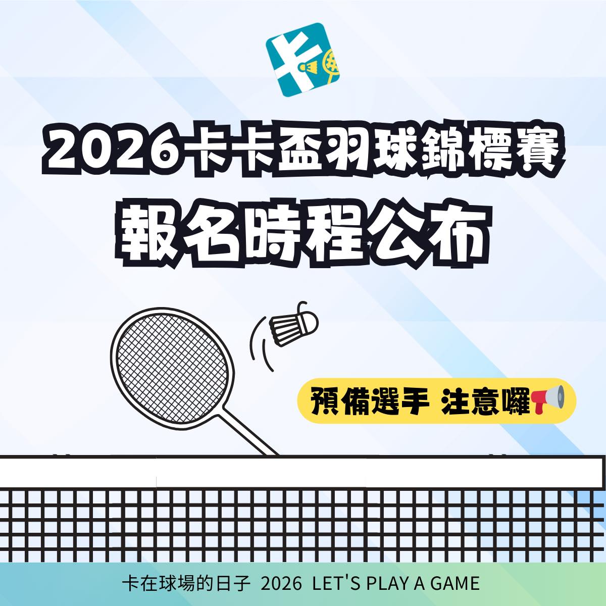 📣 2026年第二屆宜蘭縣卡卡盃羽球錦標賽