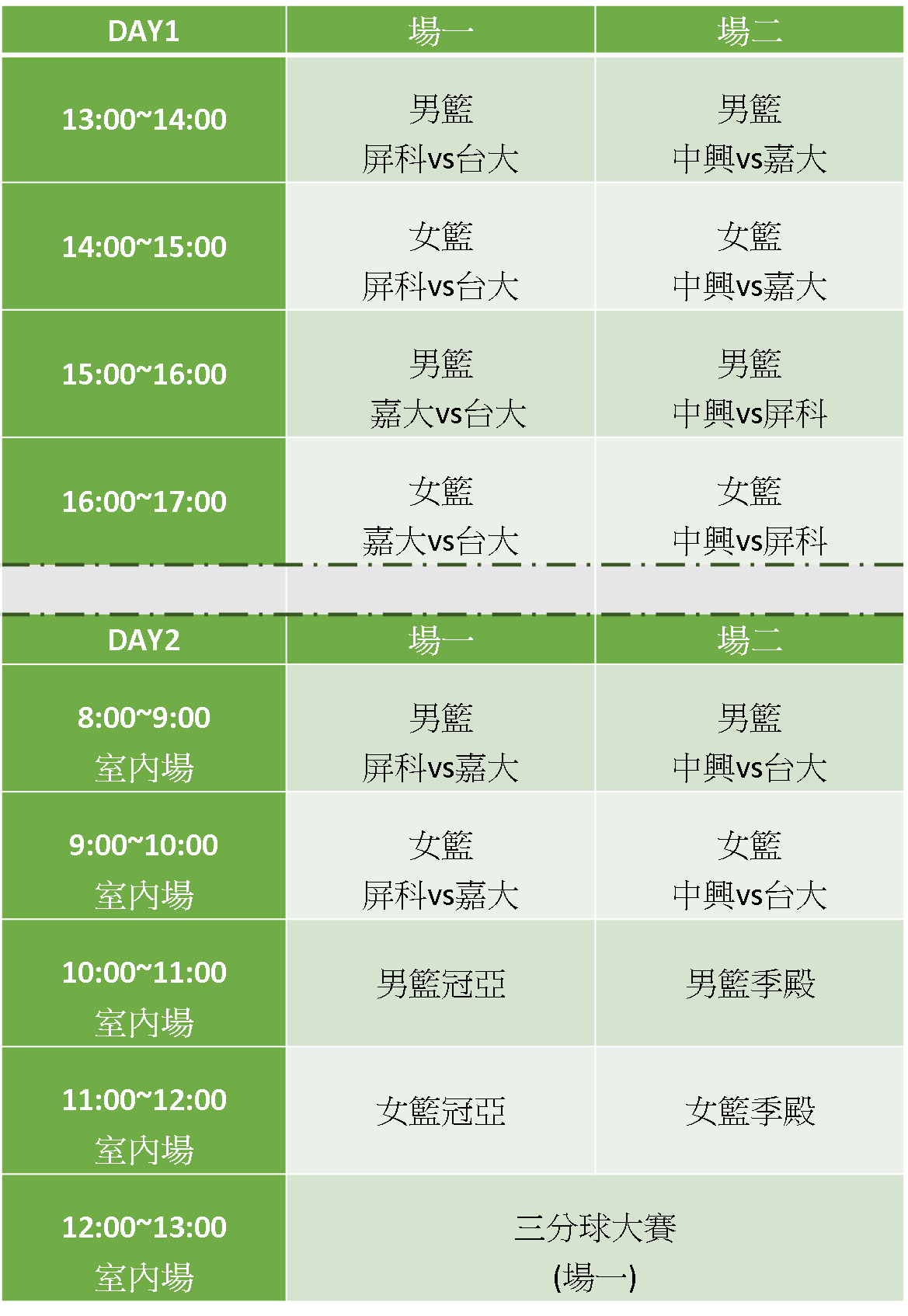 雨備狀態:女籃在屏東科技大學孟祥體育館;男籃在麟洛國小風雨球場