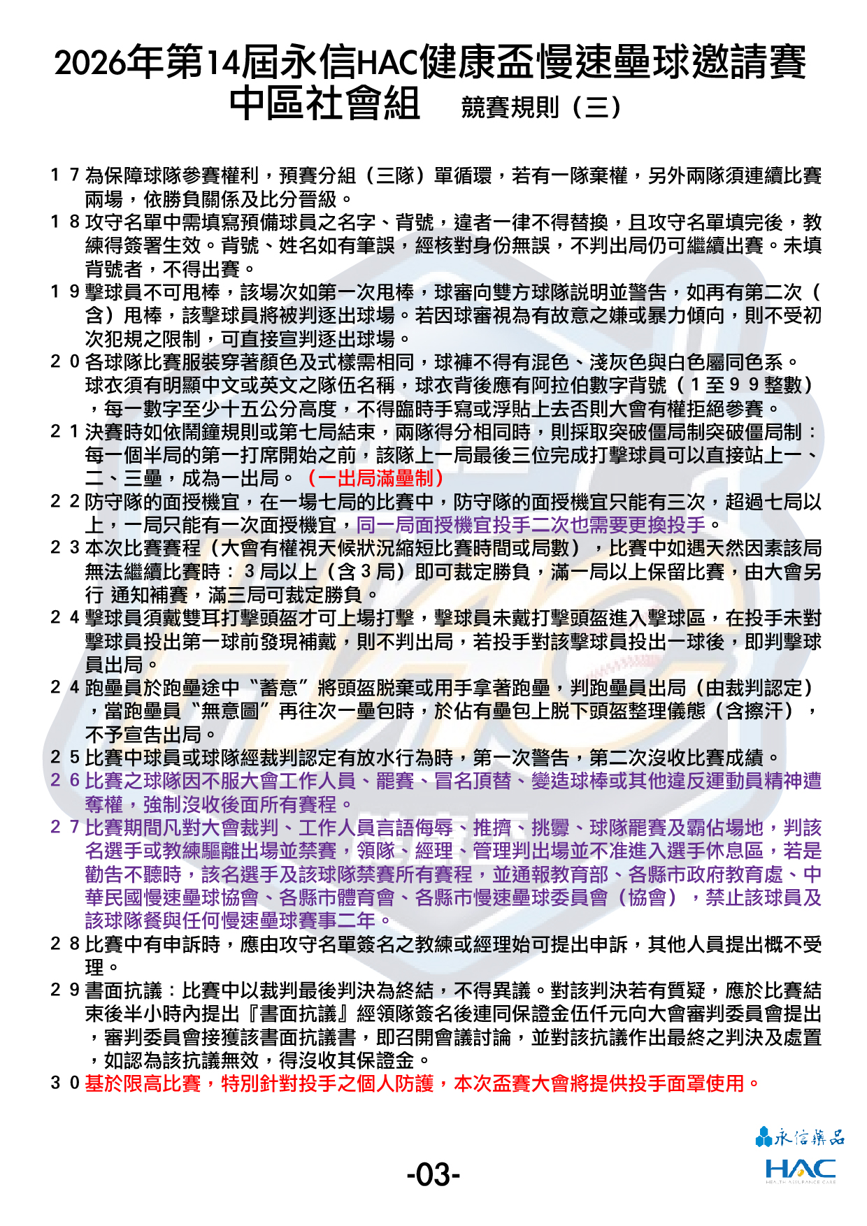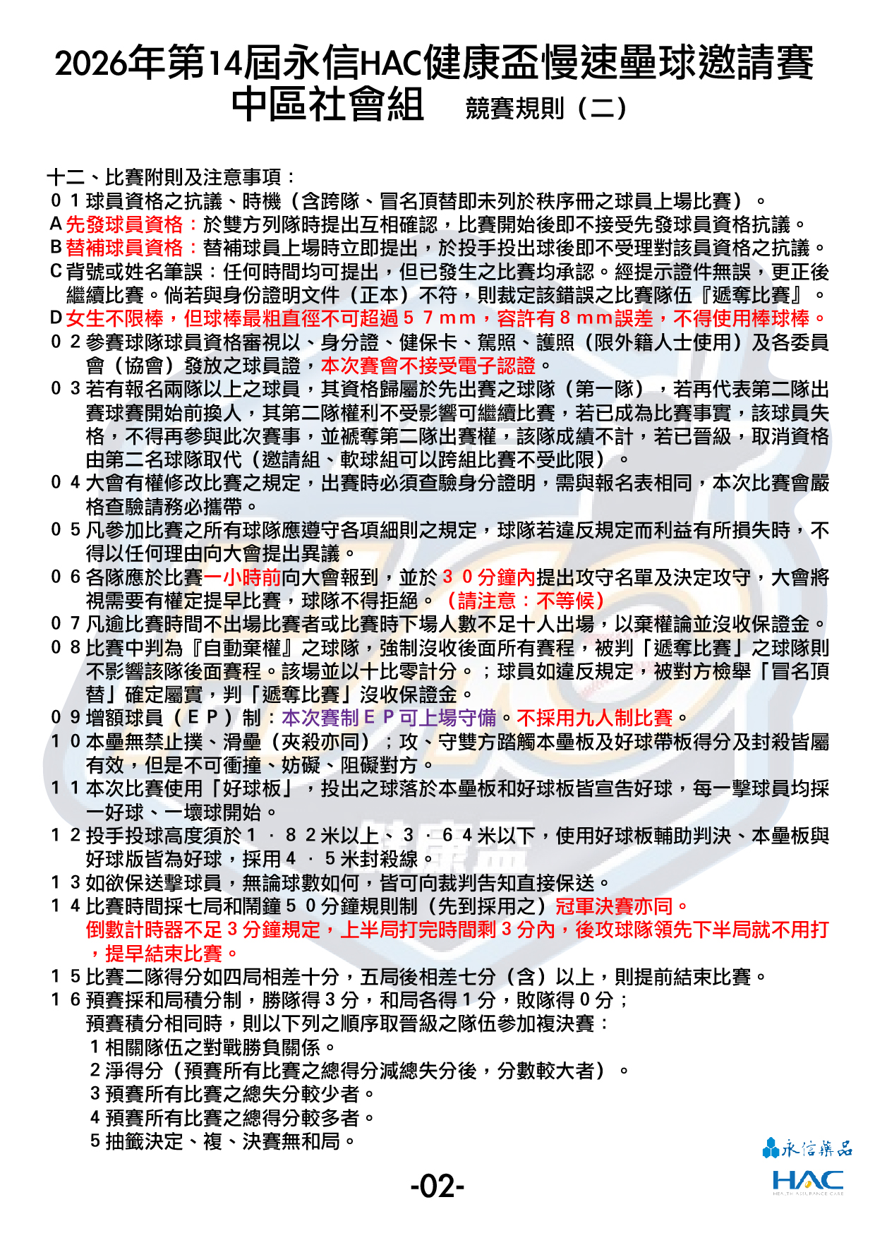 2026年第14屆永信HAC健康盃慢速壘球邀請賽